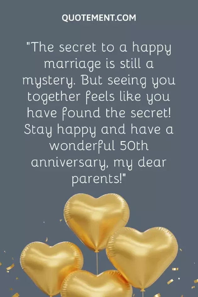 as to why your 50th wedding best feeling, and having you amazing couple and of happiness, fun, and good health. Mom and dad, congratulations!”6. “Here’s wishing you