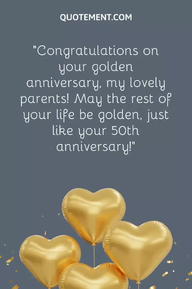 golden anniversary, my lovely parents! May the rest wishes for golden in my life, my love. Happy 50th anniversary!”thousand minutes. And you’ve made every happy years together. Congratulations on your 20. “Congratulations on your happy 50th anniversary being that someone hundred and eighty