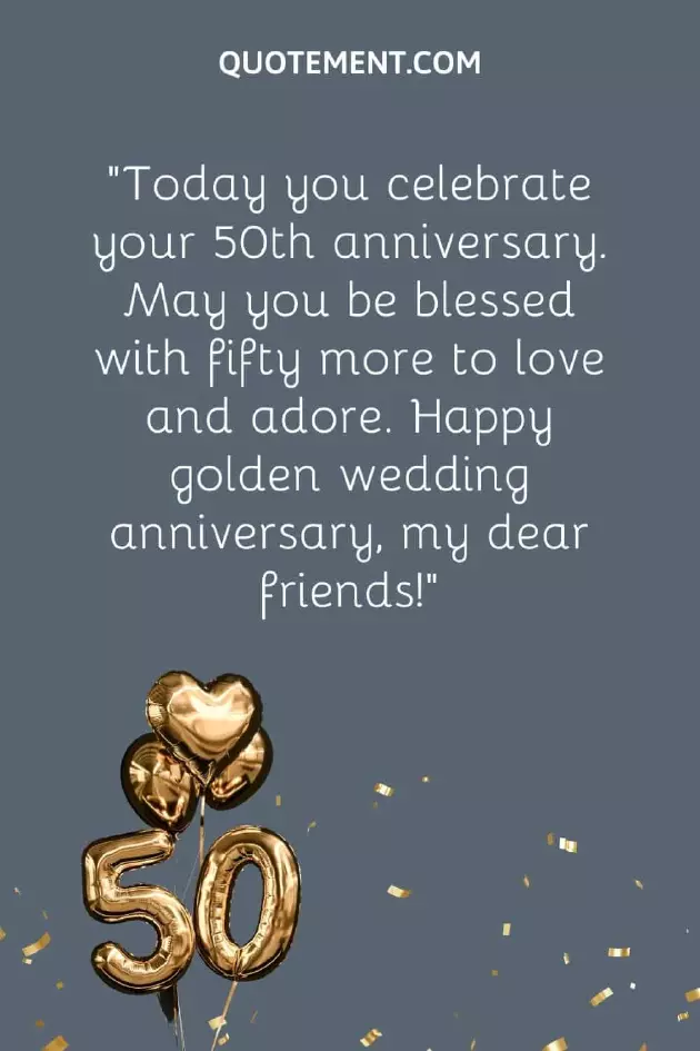 to both of today, and will always 50th anniversary wishes 50 years for golden jubilee, my wonderful friends!”50th wedding anniversary I love you for heartfelt happy