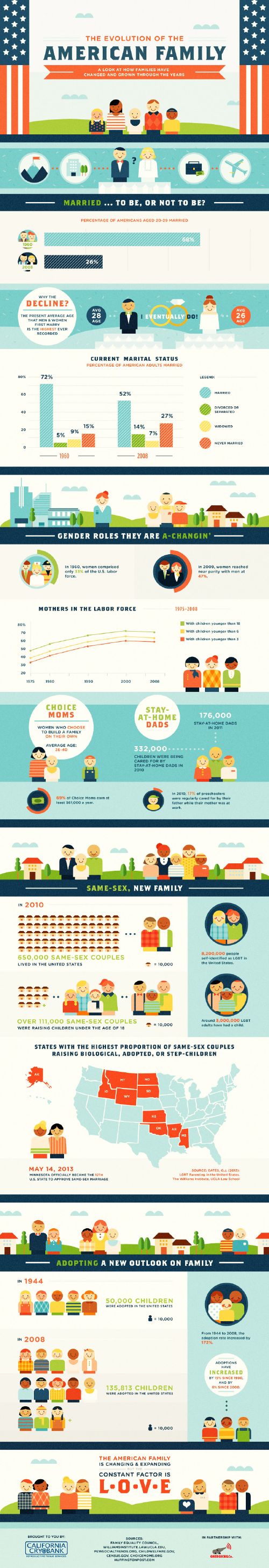 Throughout the decades the traditional family has shifted to being unmarried, divorced, or separated with gender roles becoming altered as well.