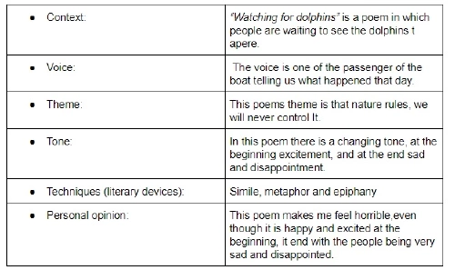 In conclusion, the poem “Watching for Dolphins” treats about of