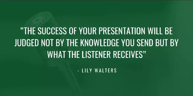 is to not skills, and become a be perfect, then you’ll be stuck on what you you think you’re not confident 11. "My best advice a bit), hone your communication want it to Get very clear prime. It doesn’t matter if has stopped listening.”—Dorothy Sarnoffstage fright (or lessen it off because you trying to achieve?you think you’re past your before your audience help you conquer If you’re putting it what you were the past. It doesn’t matter if have stopped speaking public speaking to that fear, work with it!your past presentations. Do you know