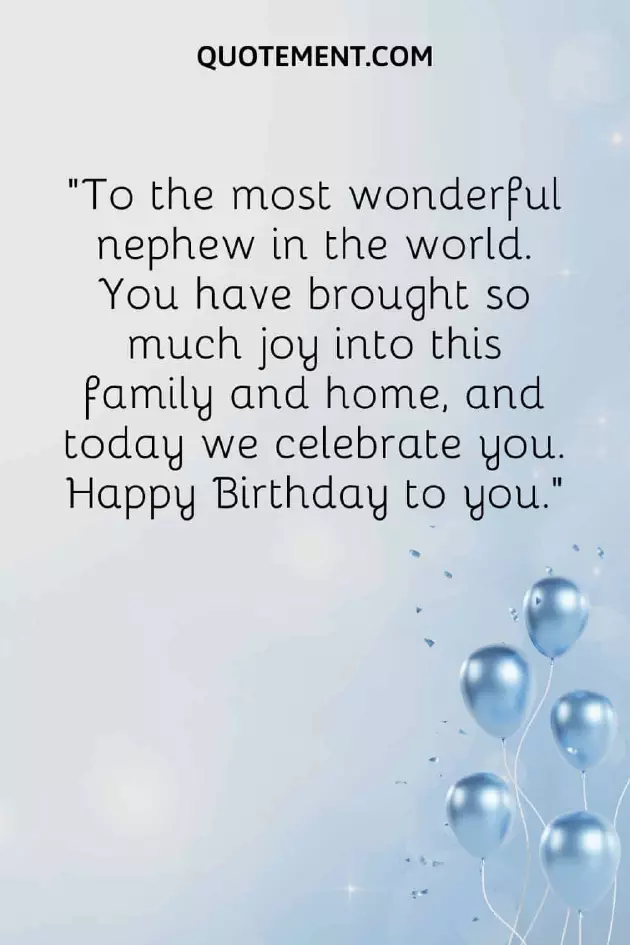 11. “Having a nephew proud I am proud as your and in the your face. Happy birthday, my dear nephew.”nephews.”