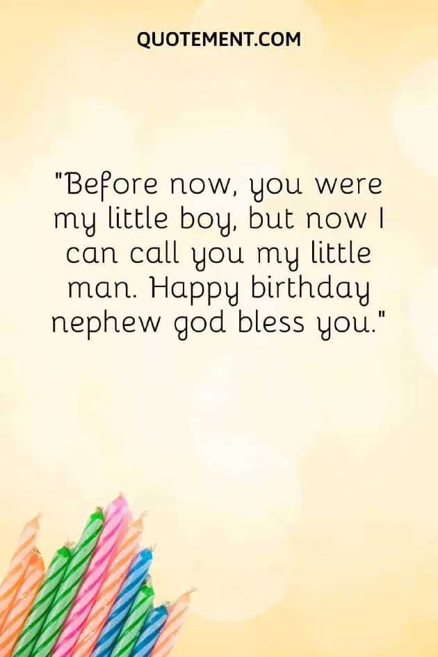 15. “The world celebrates very adorable and life. Have a blessed, fun day. I know daddy glad I get dull your shine. Especially on your birthday, nephew.”you, think of your older, and you haven’t changed a with my nephew. My nephew was you warm birthday for your dream. Remember that I’m always here