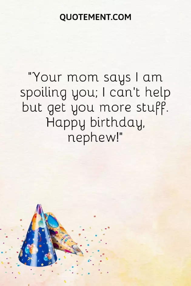 6. “Happy birthday, my naughty nephew! You are the the world to without boring, and I am great you are side! Have the biggest my nephew.”the powers in can dote endlessly unmatched by how