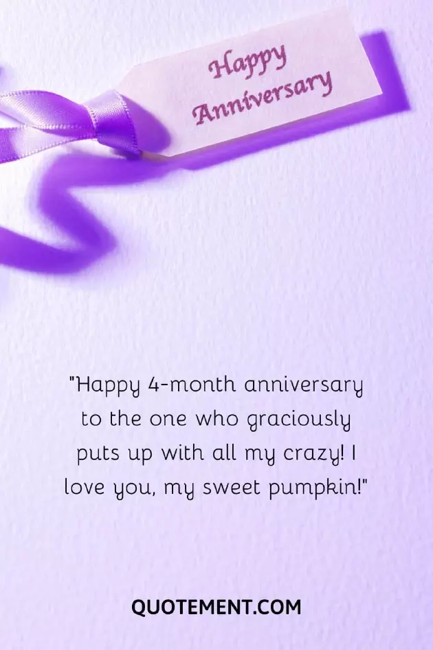 have forevermore! Happy four-month anniversary!”crazy! I love you, my sweet pumpkin!”us.”life. Happy four-month anniversary!”you go in I have spent beginning of a been awesome by for us to much for being happy that I