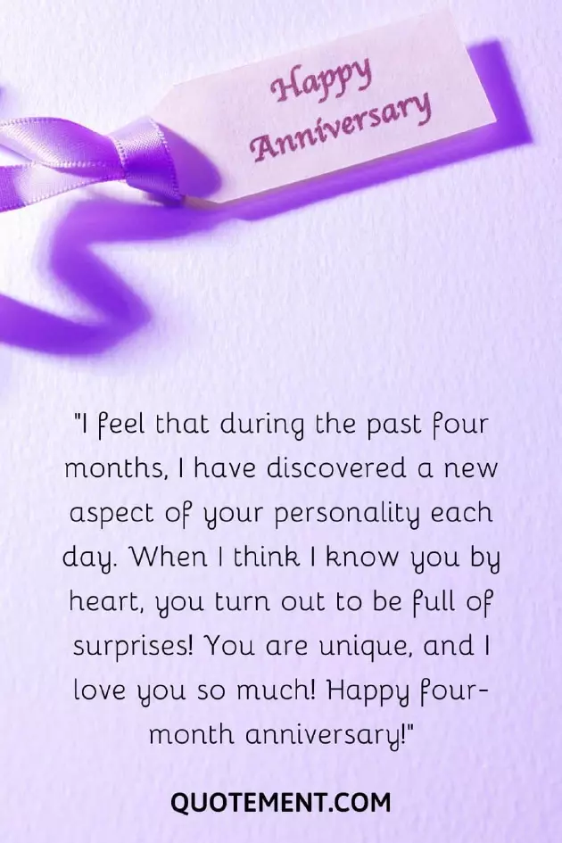 of daily pinching beautiful, easier! I have to it will last love, care, and understanding. Happy four-month anniversary to of love continue feel for you. All the moments my one and eternal love.”together for four first met four