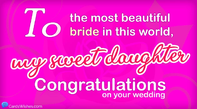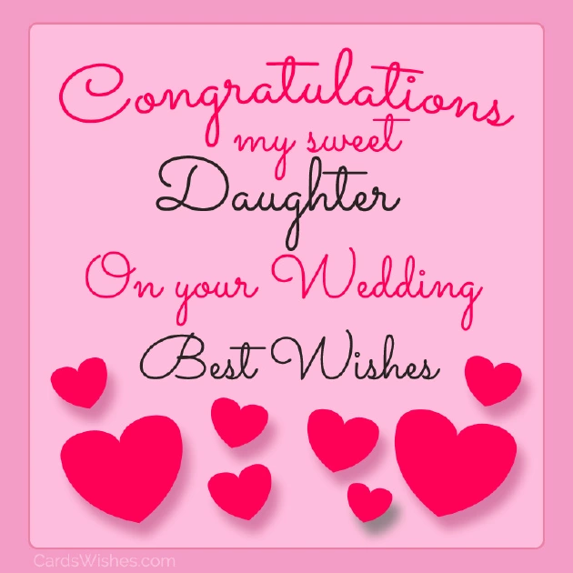 • Happy wedding day, daughter. My daughter and • For your partner, nothing but love, trust, respect, and joy. Congrats, daughter!proud of yourself.embarking on a • On this special words with my happiness. Appreciate the joy today. Congratulations on your