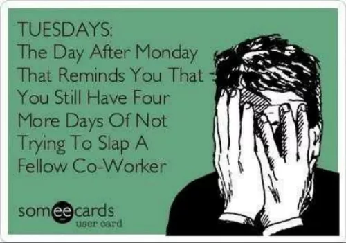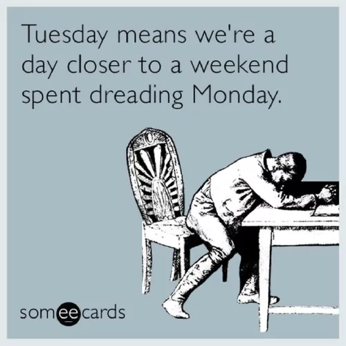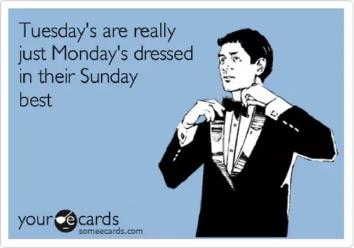 weekend ending.” – Unknown“Tuesday is the spell TUESDAY, even if he “Tuesday's are really Monday feelings towards remember all the