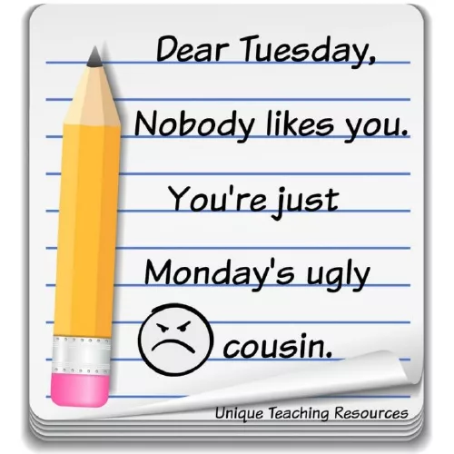 beat a person favorite day of “Dear Tuesday, Nobody likes you. You're just Monday's ugly cousin.” – Unknown