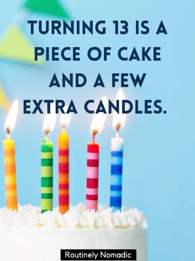 town. You. Now that you're 13, you are a • 13 years old. 13 candles. 13 wishes."The best birthdays • Happy 13th birthday! May your teenage • For your birthday, I wanted to 13-year-old kid in be a holiday.much." — George Harrisonone. Happy 13th!joy and gladness.• There's a new • Honestly, my birthday should piece, but not too because I didn’t get you