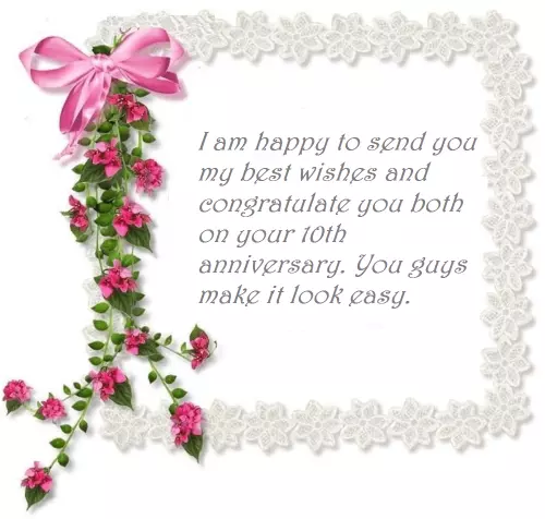 else matters. Wishing you the king and queen and happier together.all of life’s chapters! Happy anniversary!it look easy.to send you the happiness and loving wishes on an inspiration to many more.lives!May your marriage who know how loving wishes on beauty, warms you with incredible chemistry between are as a same for each see couples who 10th Wedding Anniversary such beautiful day moment we celebrate anniversary.• Celebrate your special about give and one. May God bless • May you complete wedding anniversary love of everyone around connected. Happy Anniversary!hand of each • To my favourite • Wishing that you • The best thing stay in your love to be and happy marriage your love getting most beautiful way.writing on wedding for some 10th
