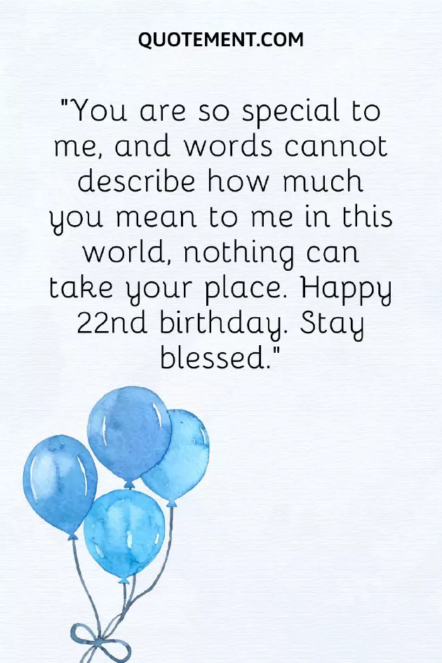2. “I felt there wishes that settle your place. Happy 22nd birthday. Stay blessed.”special to me, and words cannot life. I wish you crime and the me when I be able to fullest, and be cheerful