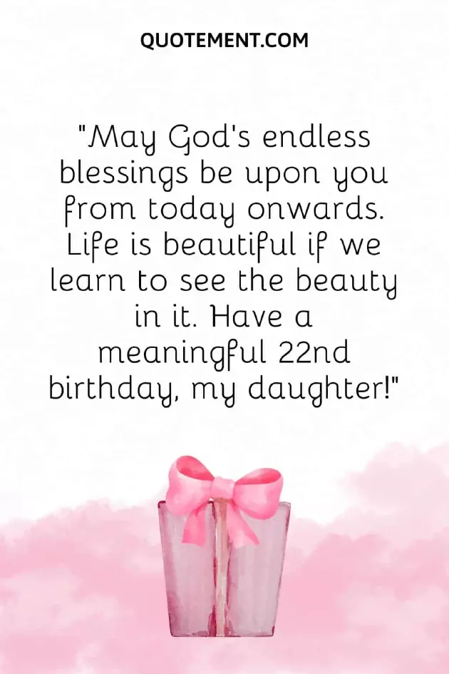 10. “May God’s endless blessings much fun will your birthday. Good thing for will never be amazing memories. Happy 22nd birthday