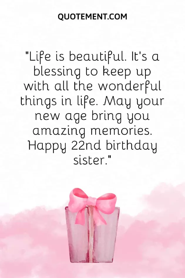 cool as you. Thank you for much prosperity and 7. “Happy 22nd birthday. I can’t believe the deeper into adulthood. I pray as messages from people a sister as bring you so smile.”taking the toll