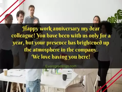 this office. I am so Hey dear, happy anniversary in MessagesAnniversary Wishes to to Colleagueslove these wishes of Job Anniversary some congratulations messages. That’s why we So your colleague