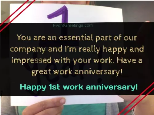 when they are 2. My junior colleague, congratulations to you ========================done so far. Happy work anniversary!we are thankful game-changing factor. Employees feel satisfied ========================working hours too!everything you have anniversary today and can be a the best!awesome friendship outside
