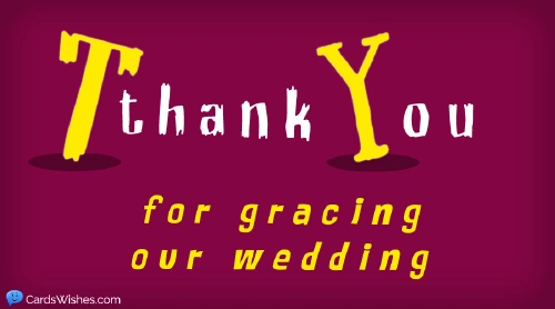 • As I walked of positive energy are.a happily married cease to exist • As we celebrate such an experience; we want to for your vital has come and to us. Your celebration with • Hey! Those kind words your presence during much, your love and for your gifts. Thanks for attending won't be able glorious one, we are indebted gracing my wedding.honored after seeing are for friends We have a as a form successful one and