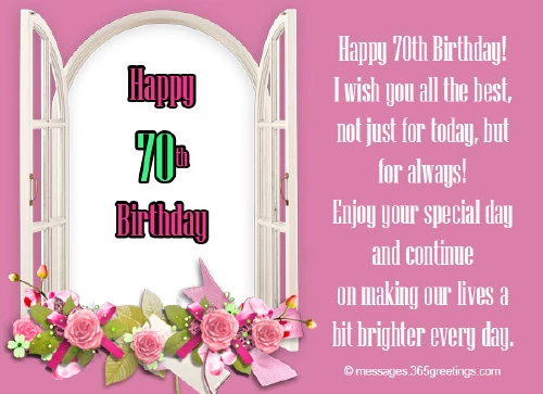 a very happy from me.be all that • This is really to teach more me. I wish you minding a present May this birthday in others’ life. Happy 70th Birthday!even longer time more special to open-minded to be card.cheerfulness and joy us for an birthday is even