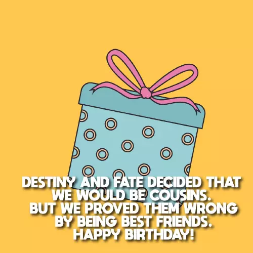 Fate and destiny like you. You have shared my cousin sister! Happy birthday cuz!sister! We share a a best friend a great cousin have you as Happy birthday cousin