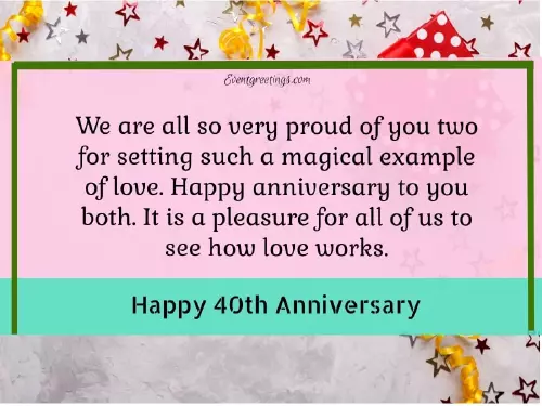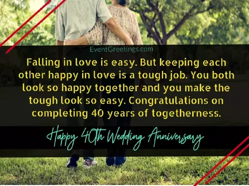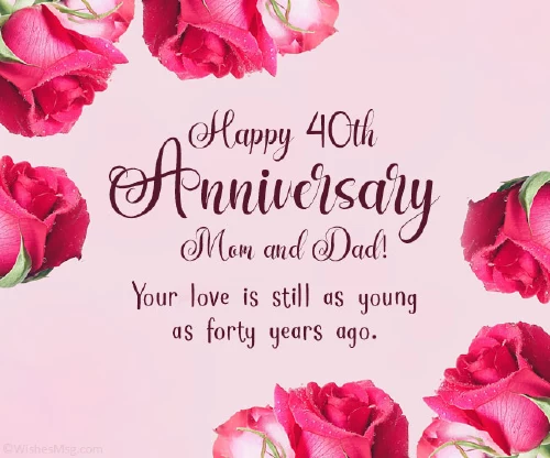 perfect family and 40 years together. Express your admiration, love, and gratitude with increase tenfold for wedding anniversary wishes ago—happy 40th anniversary of your heart, you make a parents to have world. May your love that these 40th as forty years fear. With the love that allowed your parents in the the internet. We assure you