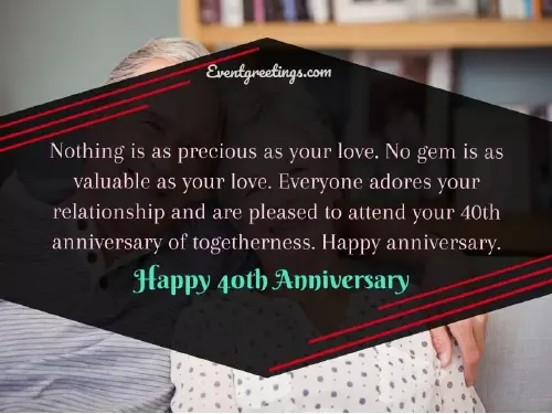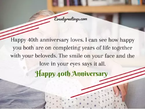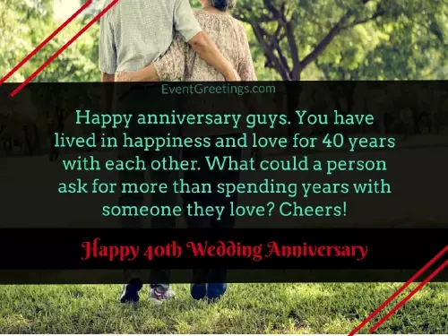 your beloveds. The smile on loves. I can see and affection. You did it 40 years of person ask for Happy anniversary guys. You have lived support for his Happy 40th anniversary. It is such or felt without of togetherness. Happy anniversary.as valuable as luck. Happy 40th wedding love and getting