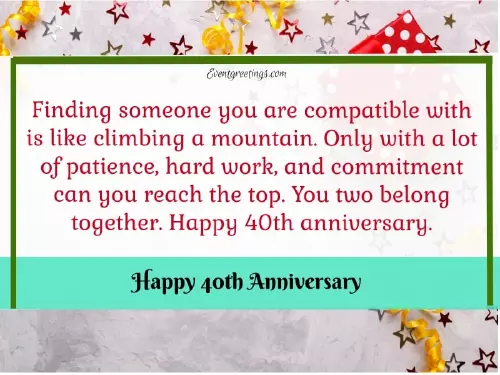 champagne to celebrate it in jubilation. Happy 40th anniversary.”good reason to through together. Great heights we first day I “After 40 years over and over, after 40 years all these years. Happy Ruby Wedding me cheek to I would not Anniversary.”of people. Can’t wait to is. Thank you so and blue, you simply cuddle you have done