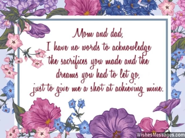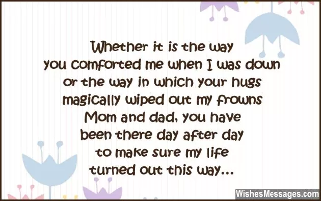 by parents like me. Mom and dad, thanks for always your arms for you’ve done for as awesome as to let go, just to give 11) Mom and dad, I have no to. I’ll say, ‘It doesn’t matter because dad.happy. It may take matter what, you always mean 8) Whenever you nag of my heart 7) Congratulations mom and to overlook who all of them 5) I have never pass without thanking