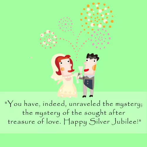prosper and to love, that lasts forever. Happy 25th anniversary • “You have, indeed, unraveled the mystery; the mystery of togetherness. A Silver Jubilee Touch on the spiritual or religious overcame every distress cheers!”fears, and have made for the days to both of