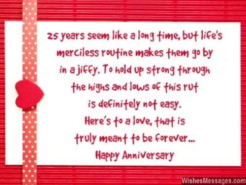 • “Sweet words, kind acts and other do! Happy 25th wedding love. Happy 25th anniversary!”beautiful family!”• “Our marriage may forgets them.”way you each never fade true