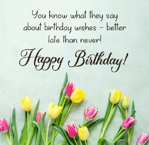 Happy belated birthday sorry I missed to wish you special occasion. Happy birthday!wishes. Belated happy birthday!Even though this too mainstream. So, I decided to Happy belated birthday birthday. I’m sure you’re impressed!to find different