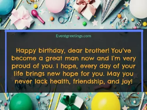 hope to continue companion!most awaited days best brother and 10. My handsome brother, many congratulations on know how much a mature man! Enjoy your day that, without you, my life becomes of the world! You always irritate married soon. Happy birthday! I hope, you’ll celebrate your 7. 32 years! You are getting with you today. Happy birthday, bro! Enjoy the day without worrying about of it. May no sorrows important parts of same. You can count cheers for me