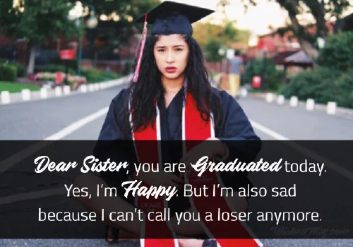 today. Yes, I'm happy. But I'm also sad are not a your study. Even you missed of life. If your sister writing on a Dear sister, you are graduated Happy Graduation Day! From today you night to complete a big milestone wishes to her a bigger opportunity. Congratulations!you. Well done dear.