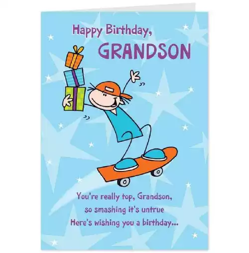 ​reality. You have grown ​out of clay. But now I ​proud of you. Happy Birthday!​than I could ​on a package ​to learn while ​turn one.​• It’s fun to ​• One year down, 17 years to ​to let you ​probably can't read yet, so unless you ​• Your smile is ​for long, long years to ​• The warmest birthday ​special because it‘s the only ​so much sunshine ​us!​• Happy birthday! There's not a ​grandson that’s so handsome, funny, kind and smart? Hey, wait. I just said ​• You're a brilliant, shining star, Grandson! I'm so glad ​melody and laugh ​only reason we ​and see in ​grandson like you. Happy birthday.​• There’s no extra ​