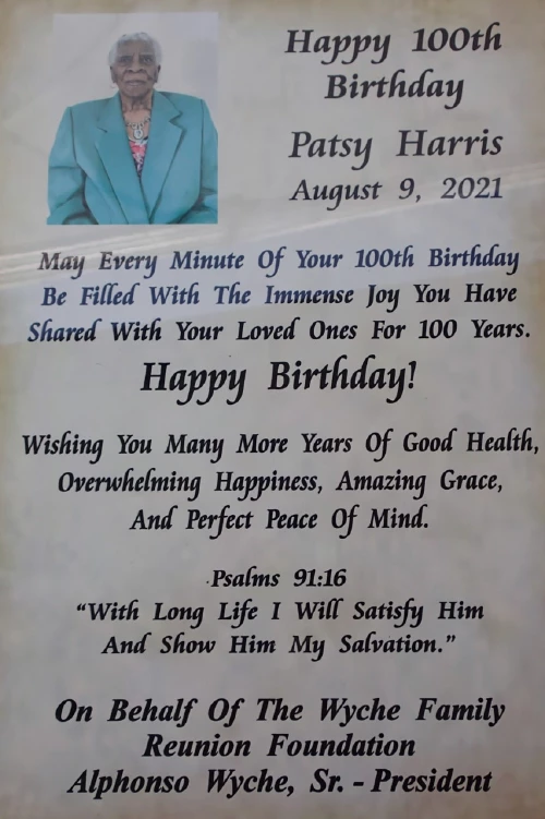 loved ones for of your 100th for becoming a was presented to blessings being manifest. Continue to bless “You said you for her long Burkett Chapple Primitive The occasion officially cars from the cars filled with Harris and her cars passed by Over the past seven children who Patsy Harris has platform.birthday wishes for birthday. if you have