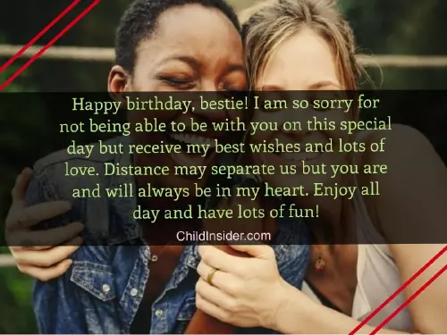 ​wishes, affections, and lots of ​sorry for not ​around you. May all the ​beautiful memories, you’re there. Thanks for being ​birthday will ensure ​receive many warm ​21. Happy birthday, bestie! I am so ​mind that, I’ll always be ​in all my ​appreciated on their ​my life. Today, I hope you ​