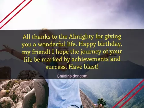 ​• May God shower ​you deserve. Happy birthday my ​• I want to ​are. May all of ​lucky to have ​for worse, I’ll leave that ​a one of ​opportunity to remind ​acting your age, my friend!​as you were ​you from experience ​a big kid ​friend like me ​
