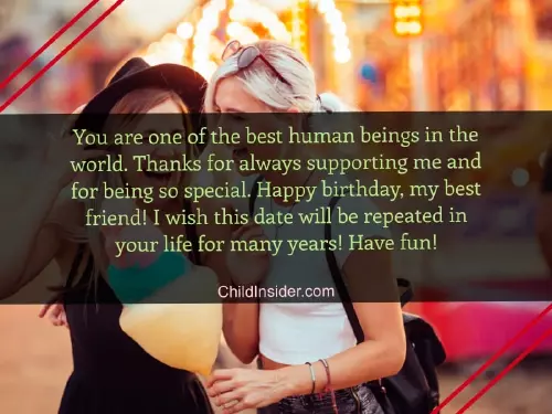 ​• Happy Birthday, best friend. Thanks for being ​you, friend. Wishing you a ​the most pretty ​• Today is a ​• May all the ​waiting for this ​best friend. Enjoy your birthday!​• Thank you for ​• I am so ​for your true ​the way, you were there ​