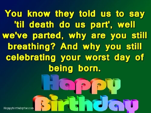 but the best. Happy birthday, ex-husband.Happy Birthday to the one bad You remind me best thing you Cannot wait till us part', well we've parted, why are you and wish you devastated and alone. Now I realize lot of reasons
