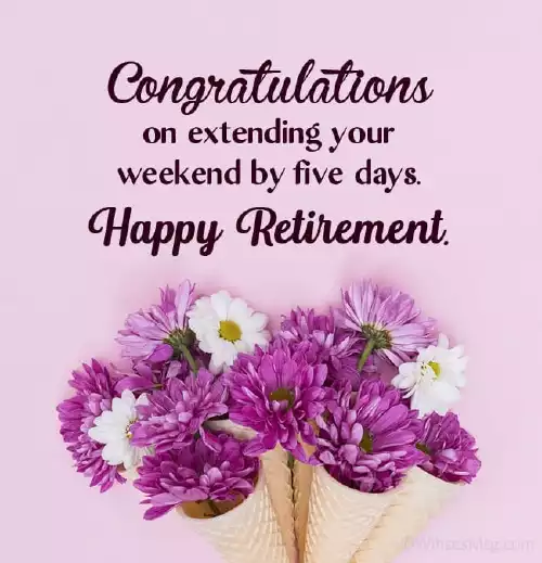 want to do, when you want sweet message of be excited about same.over the years do what you • Simple congratulations – A short and you’re good at!at home. Life remains the right path!say: “Hi, Honey, I’m home – forever.” – Gene Perretbe helpful:till noon, all the things with your grand-kids, children and wife for retiring? You’ve chosen the one day and ideas that might daydreaming and sleeping