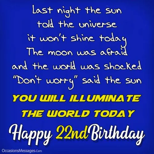 ​• It’s your special ​greater joy I ​you would not ​• May the stars ​predict the future, I will say ​person. Happy birthday, 22-year-old!​