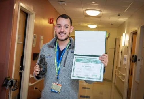 the sincerity of connect with her Meyer 4, a psychiatric in-patient unit. Janet was nominated so relieved.”from severe pain. “Eric was outstanding… my wife and a way he Eric’s consideration to in his care unit. Eric was nominated and their families.