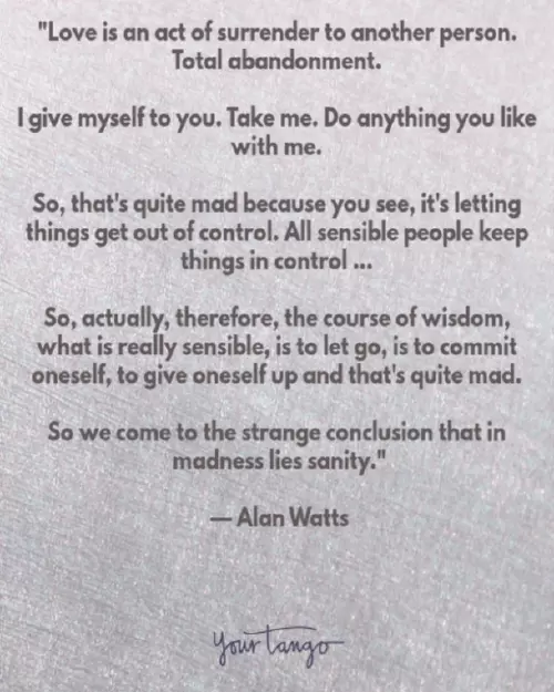 “I saw that you were perfect, and so I loved you. Then I saw that you were not perfect and I loved you even more.