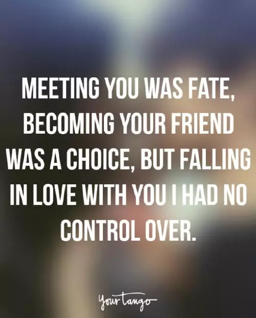 "Meeting you was fate, becoming your friend was a choice, but falling in love with you I had no control over.