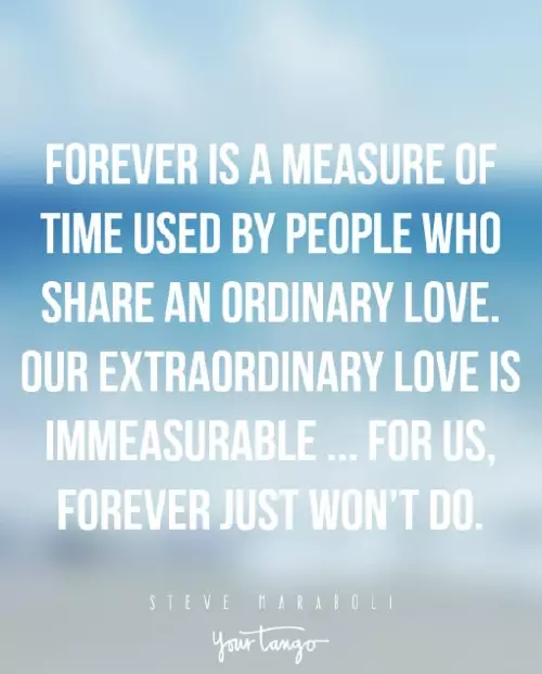 "Forever is a measure of time used by people who share an ordinary love. Our extraordinary love is immeasurable .