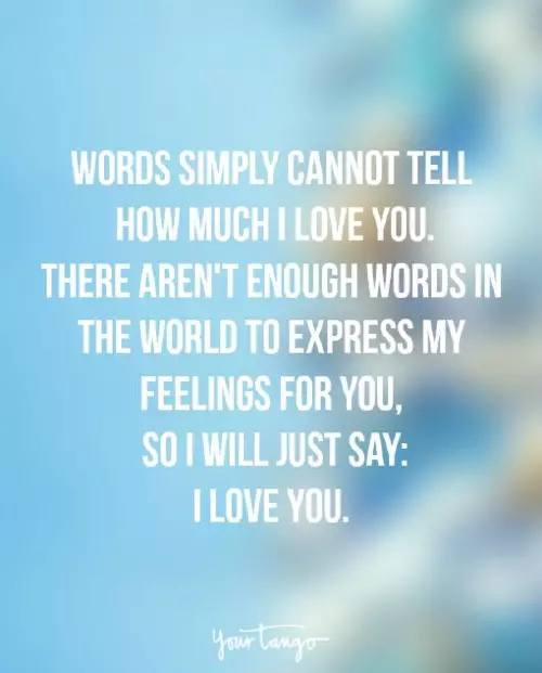 "Words simply cannot tell how much I love you. There aren't enough words in the world to express my feelings for you, so I will just say: I love you.