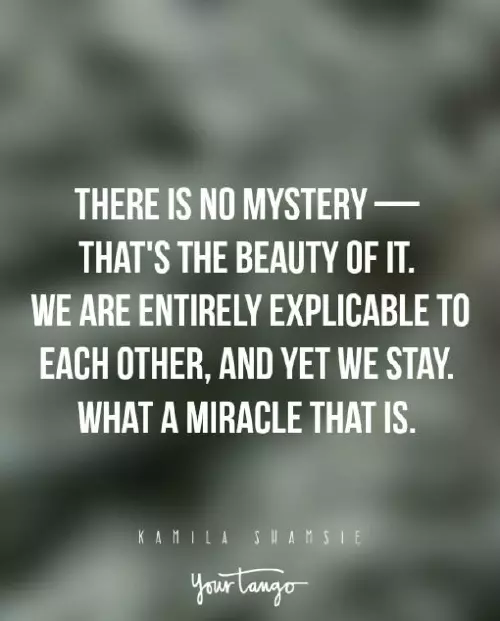 alternative presents too."There is no mystery — that's the beauty of it. We are entirely explicable to each other, and yet we stay.