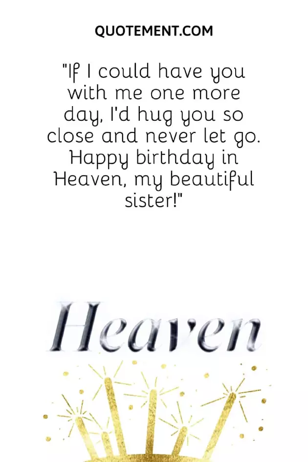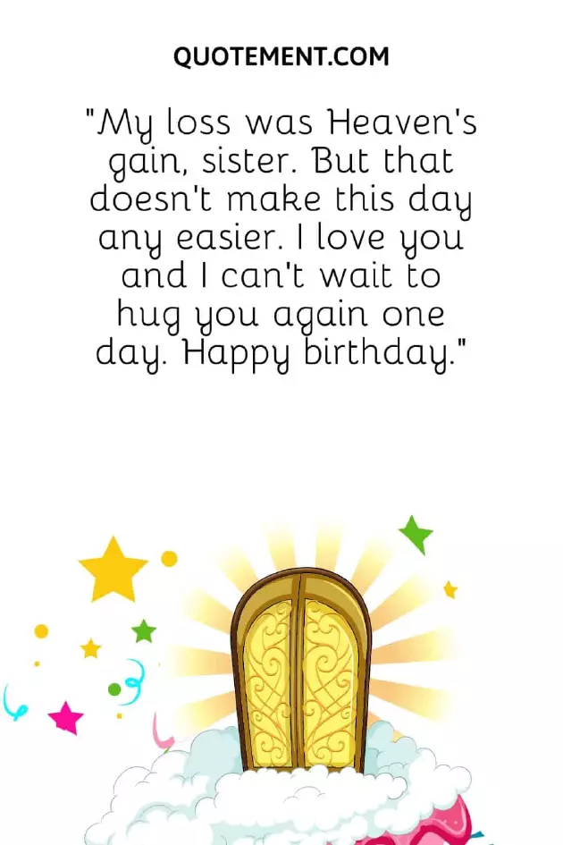 more each day, my dear sister. Happy birthday in paradise.”on your birthday, I choose to birthday in Heaven fact that they’re gone forever. A birthday card ever.”20. “Happy birthday, sister, up there in