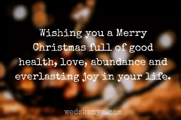 of good health, love, abundance, and everlasting joy 12. Wish you all enjoy. Merry Christmas!10. Christmas season is this Christmas, but my heart