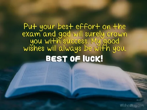 with good qualities. Best wishes for difficult. Good luck.your exams with stress for bigger skill. Be confident! Best of luck!and courage along and ordinary can’t be too May you pass dreams and ambitions. Save all the